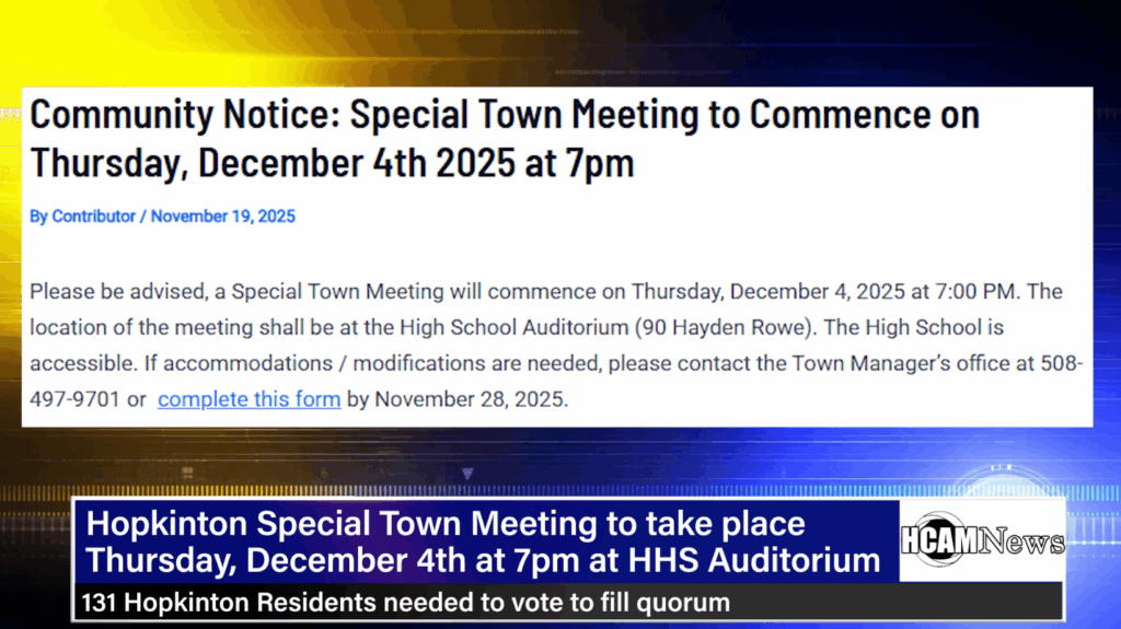 Community Reminder: SPECIAL TOWN MEETING THURSDAY, DECEMBER 4, 2025, at 7:00 PM High School Auditorium