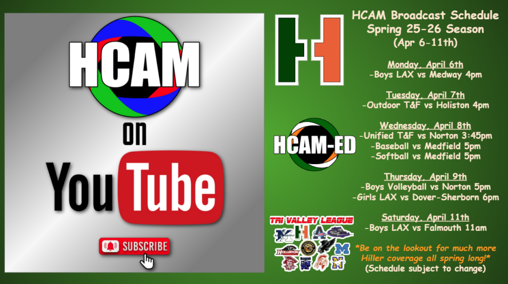 Check out the updated HCAM Hopkinton Hillers broadcast schedule below. (Schedule or links are subject to change at anytime.) Check