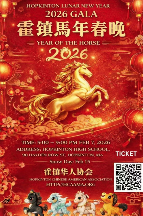 The Hopkinton Chinese American Association will be hosting the Year of the Horse celebration now on the snow date: Sunday, February 15 at the Hopkinton High School Auditorium. Times of events TBA!